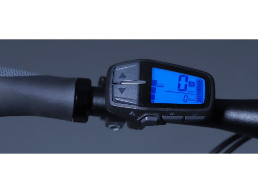 Displej je robustní a velmi odolný, umístěný na levé straně řídítek (jedná se o ovladač a displej v jednom). Díky tomu nezabírá moc místa na řídítkách, např. pro brašnu.