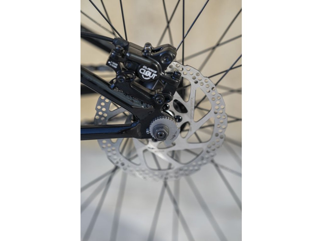 - Robustní hliníková vidlice s pevnou osou